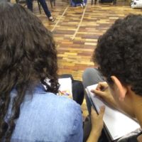 Incrível perceber os talentos desses jovens. Turma super conectada, sensível e disposta a embarcar no universo de possibilidades criativas. Assistimos aos vídeos dos autores Jonas Ribeiro (SP) e Tiago Amaral (AL) falando de seus processos criativos, levamos para casa provocações e exercícios que nos conectaram aos nossos próprios caminhos de criatividade.