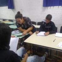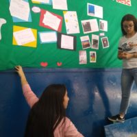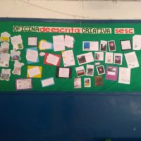 A sexta foi muito intensa. Não pensei que daríamos conta de tanto numa manhã… Eduarda Basso criou arte para o exercício da caixa mágica de palavras, a “pro” Deise, que nos acompanhou a semana inteira, criou molduras para as fotos e para os textos, cuidou da montagem do mural com as meninas: Yngrid, Stéffany, Maria Paula, Hellen, Ana Rita, Kauana, a outra Eduarda…