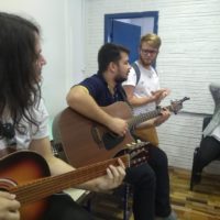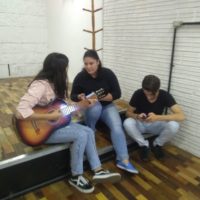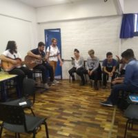 Hoje alguns trouxeram suas músicas favoritas e ensaiaram para cantar com o grupo. O Cássio Borges, parceiro do Sesc e peça fundamental no sucesso da oficina, levou o violão e mandou superbem. Até leu um texto que ele criou especialmente para falar do quanto foi empolgante participar dessa experiência e descobrir tantos talentos entre pessoas tão jovens.