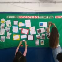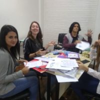 Ainda deu tempo de compartilharmos a leitura de alguns textos dos últimos desafios criativos. Os mais ávidos por compartilharem seus textos, leram as narrativas infantis que criaram na véspera, em suas casas. E construíram na hora story boards para as cenas como se imaginassem ilustrações para suas histórias. Os textos eram para ter no máximo 10 linhas, mas teve quem se empolgasse e escrevesse praticamente um livro…